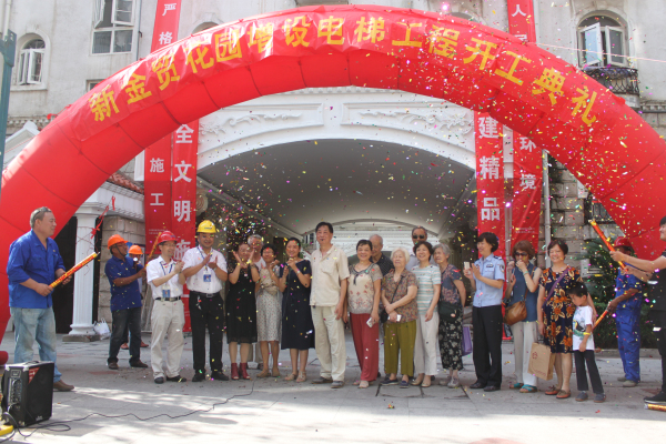 南京鼓楼区新经贸花园小区加装电梯项目开工仪式(40台 630KG 7层楼)