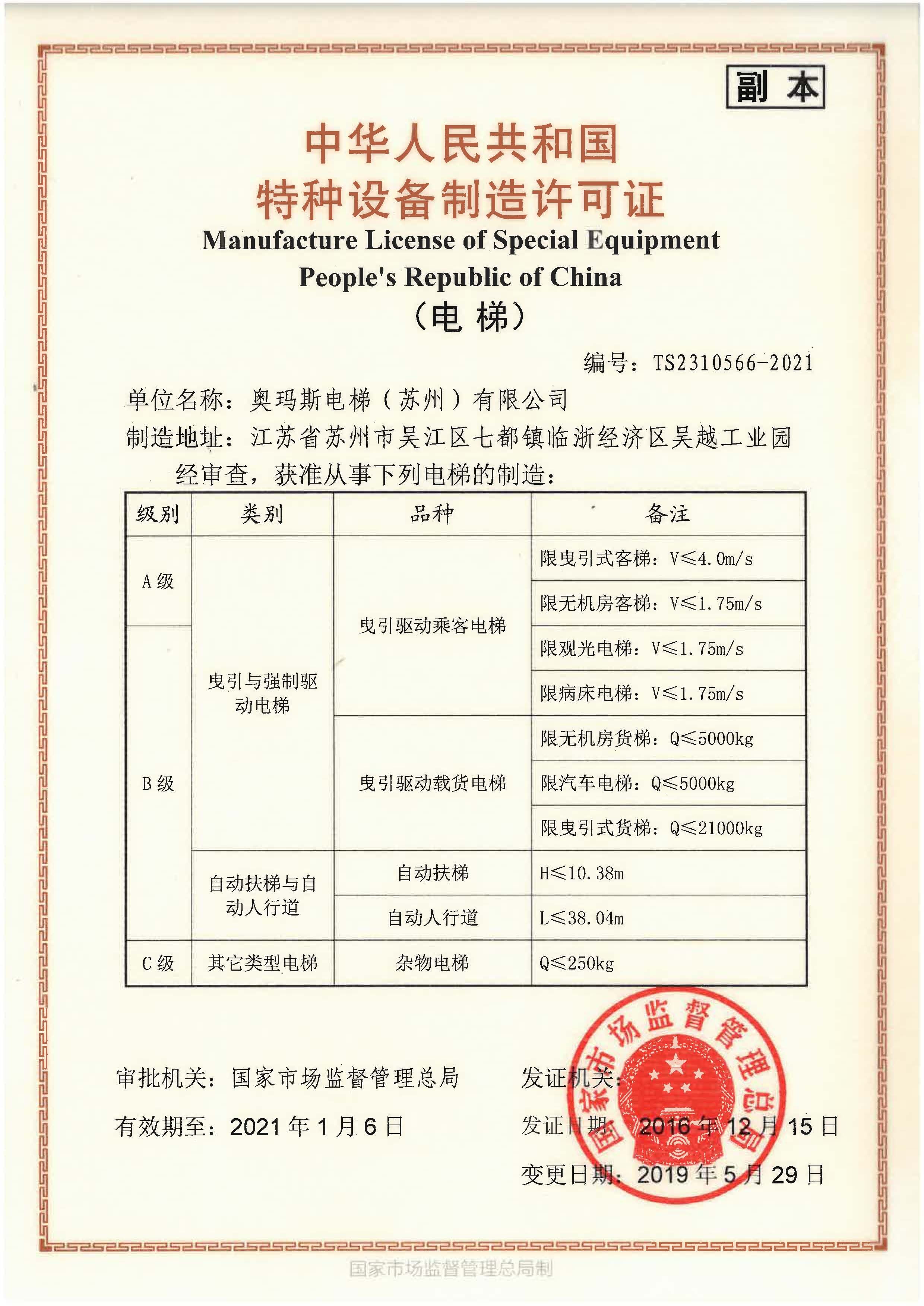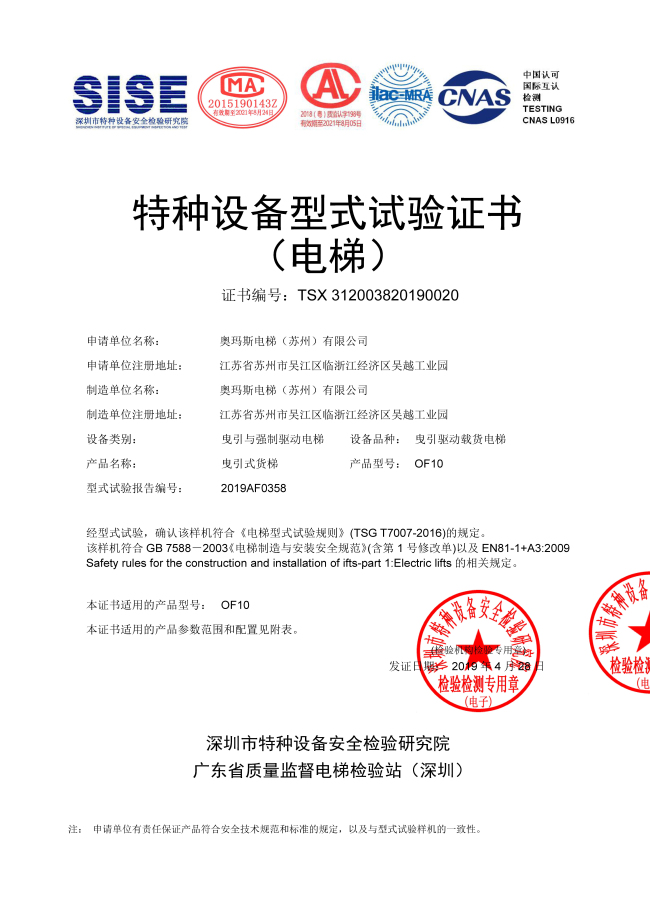 开云·电子(中国)官方网站历经半年的研发努力,我们在常州地区试制完成21吨超大吨位载货电梯样梯的安装与型式试验工作,其后顺利通过上海交通大学电梯检测中心的资料评审,终于如期在五月底前获得新制造许可资格证书!