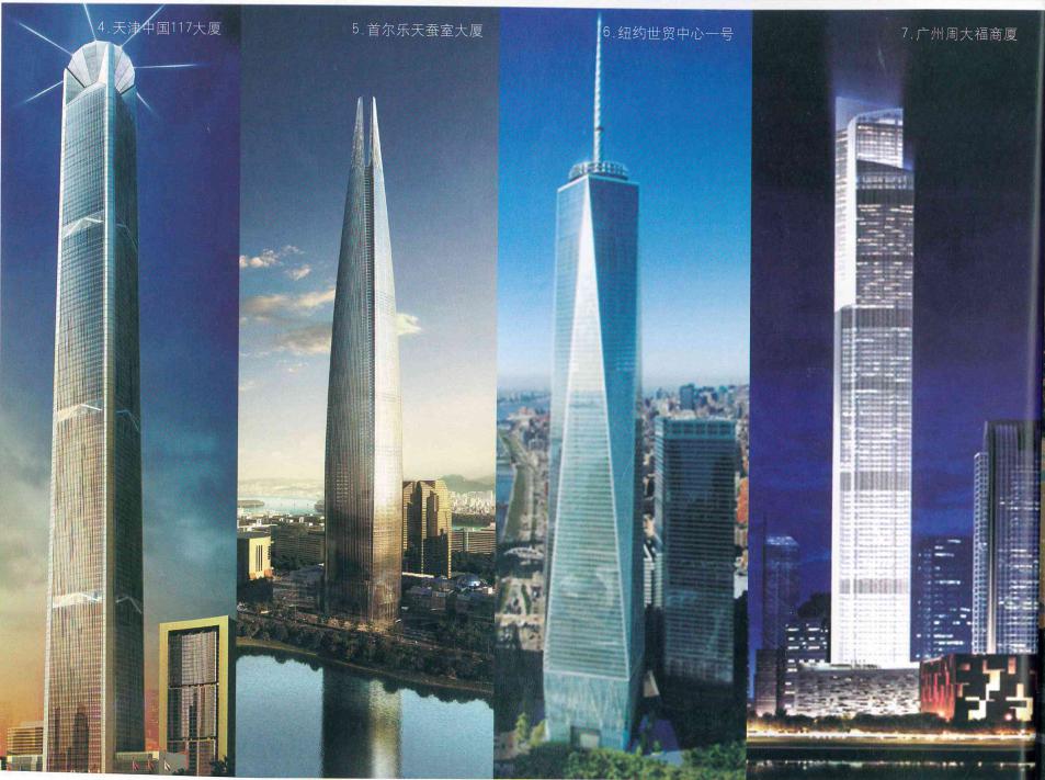 8-518米武汉绿地中心,9-510米釜山乐天世界,10-500米天津富力广东大厦